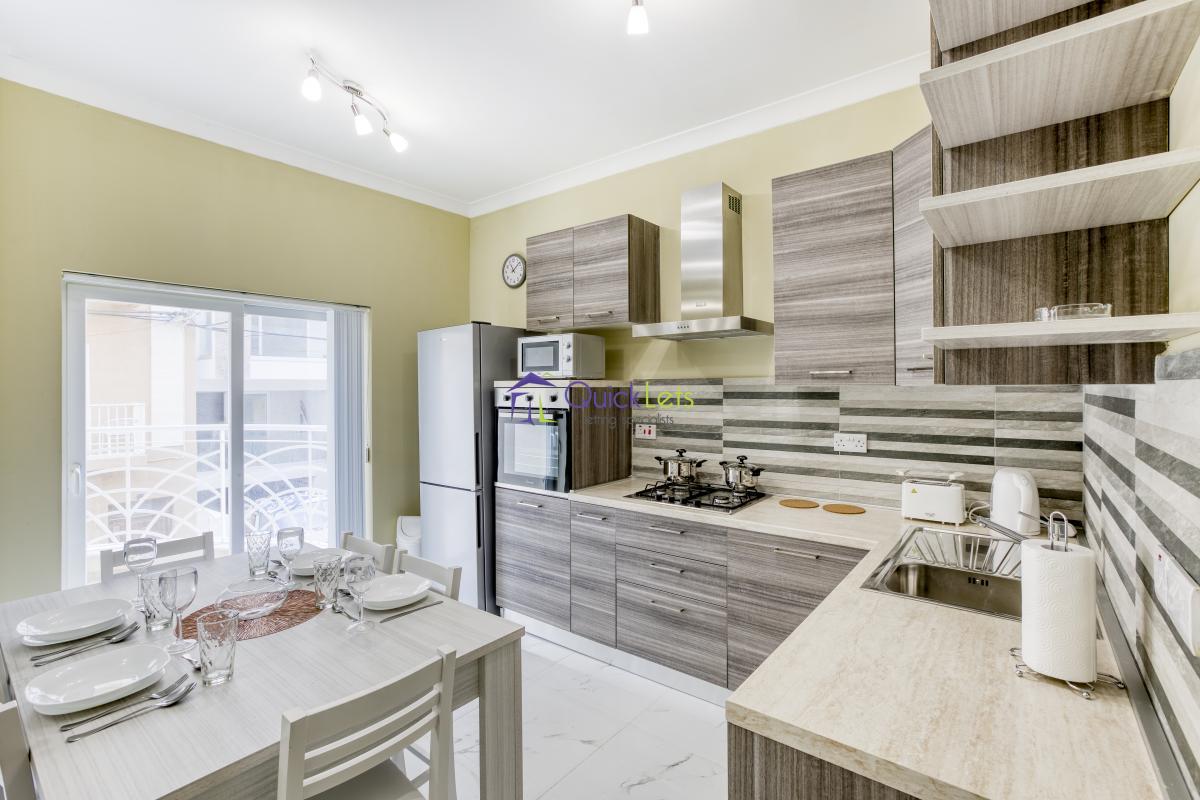 MARSASKALA - Here we find a new (2023) three-bedroom two-bathroom apartment (2023) with a side sea view. The apartment consists of a modern open space, with a fully equipped kitchen including a dishwasher, and a dining and sitting area that both lead to the front terrace with a side sea view. There are three bedrooms of which one is ensuite with a double bed, the other two with two single beds, another bathroom, a box room with a washing machine and a tumble dryer, and one big balcony at the back side. This flat is available for a maximum of six months' rent.