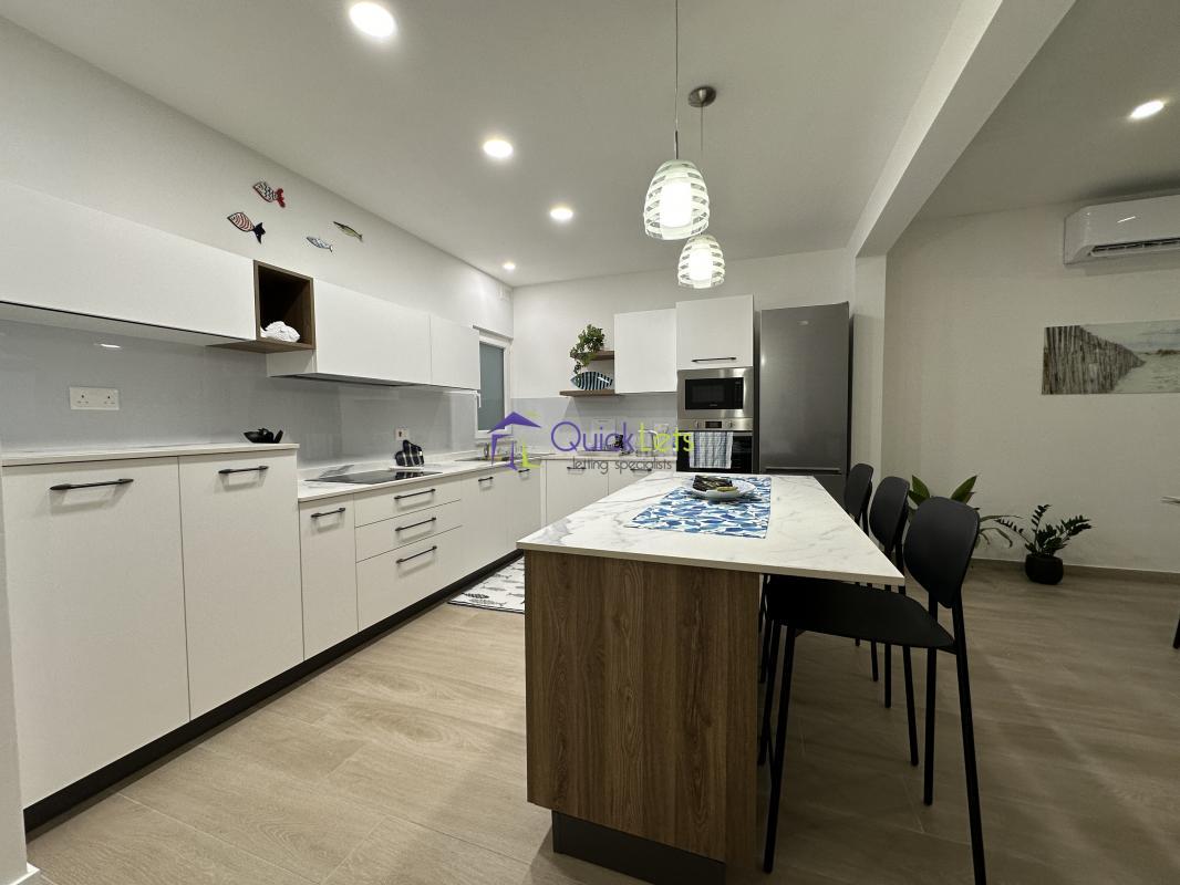 MARSASKALA - A renovated (2023) bright, airy, and modern two-bedroom apartment offers a comfortable and spacious living environment, featuring:Bedrooms: Two bedrooms, including a main bedroom with a double bed and a shower en-suite, and a spare bedroom with a single bed.Kitchen: A fully equipped kitchen with modern amenities, including a fridge/freezer, dishwasher, microwave, hob, hood, and oven.Laundry Facilities: The apartment is equipped with a washing machine and a tumble dryer, ensuring convenient laundry services at home.Entertainment: An LCD TV is provided for residents' entertainment.Living/Dining Area: A generously sized living and dining area, creating a spacious and welcoming atmosphere for relaxation, social gatherings, and family meals.Outdoor Spaces: Enjoy a front balcony with an unobstructed sea view and a backyard with outdoor furniture.The apartment is fully air-conditioned.The apartment is located on the first floor. There is no lift in the block.