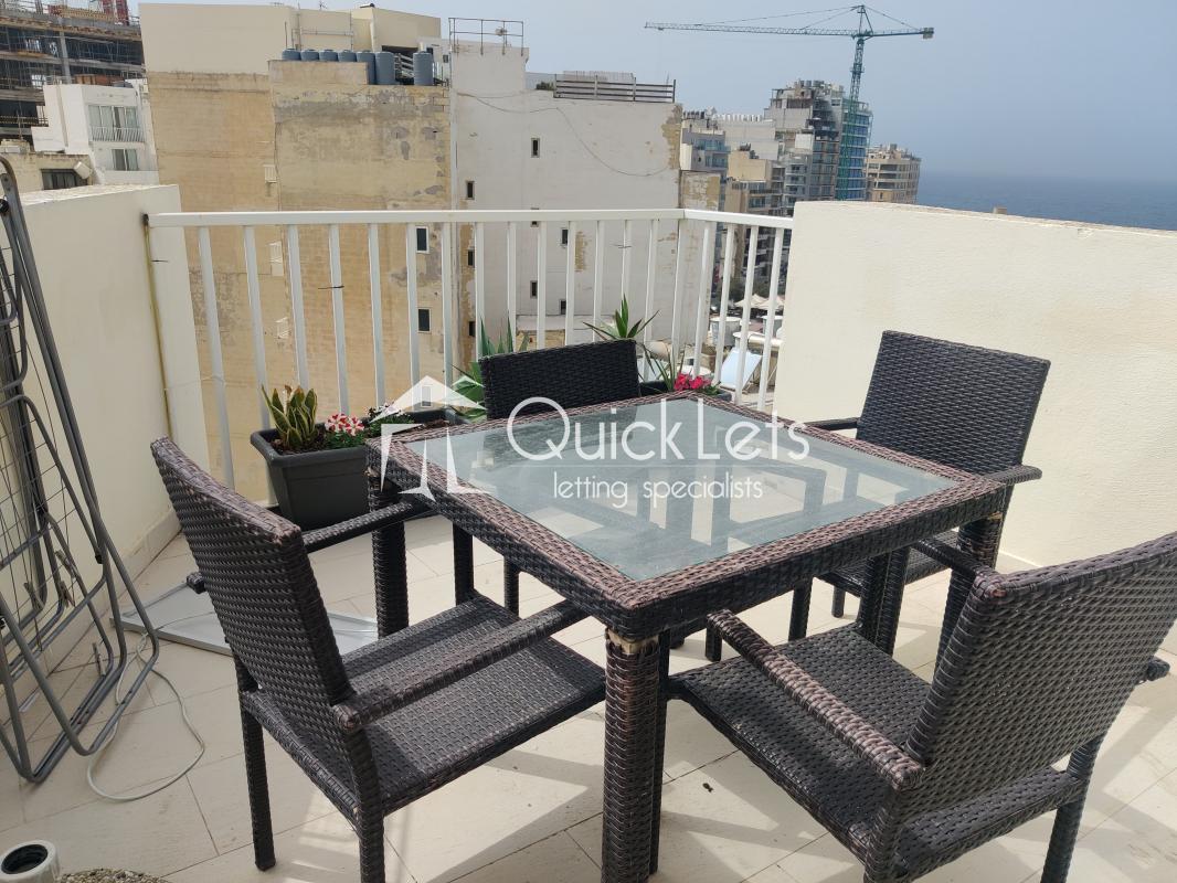 Sliema -Here we have a beautiful home located in the most sought-after part of Sliema and just off the seafront. It's a corner apartment on the 8th floor with loads of natural light.As soon as you enter, you will have this spacious open kitchen/dining/living area plan with a small balcony with a side sea view. Further in, you will have 2 spacious master bedrooms, one with an ensuite and a very spacious walk-in wardrobe. The second master bedroom also has an ensuite and a corner terrace with stunning sea views, a BBQ, and outdoor furniture.You will find loads of storage in the apartment, and there's an extra guest toilet.The apartment is fully air-conditioned, equipped, and beautifully finished.Pets are welcome :)A must-see home for sharing or family!