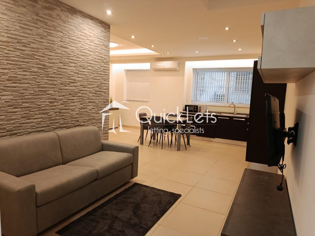 SLIEMA: A newly fully refurbished two-bedroom apartment consisting of a master bedroom with ensuite facilities and a second bedroom also with a double bed. Very modern and tastefully finished, this apartment boasts a utility room and a spacious kitchen, living and dining room. Situated on the ground floor and easily accessible within this modern building. Close to all amenities and Sliema/Balluta Broadwalk. Excellent for a young family. (no sharing)