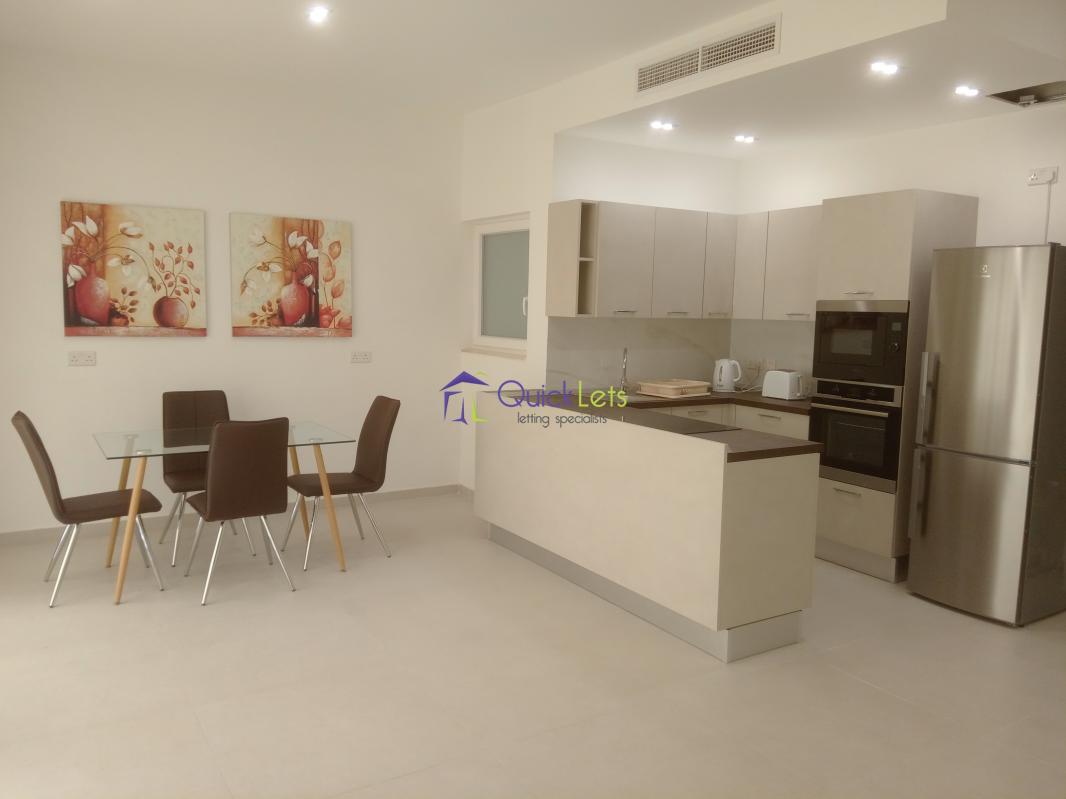 A highly finished and spacious third-floor apartment situated in the heart of St Julian's, very close to Pender Gardens and in a very quiet area. It consists of two double bedrooms, two bathrooms (one ensuite), K/L/D having a 21 sq mt terrace ideal for entertaining adjacent to it, a well-sized front balcony, and a laundry room. It has a fully equipped kitchen including a dishwasher and is fully air-conditioned. The K/L/D is south facing and the apartment is full of light with direct sunlight.Viewing is recommended.
