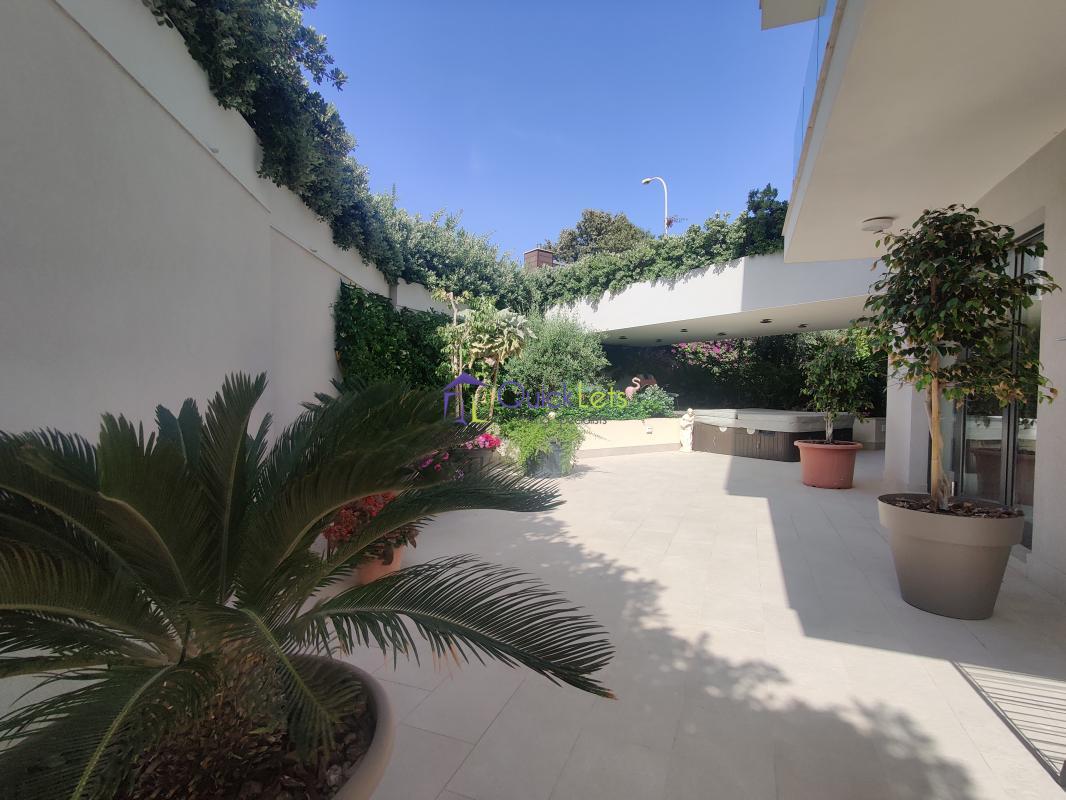 Mellieha - A modern fully air-conditioned three bedroom maisonette located in the heat of Santa Maria Estate, Mellieha. Layout comprises of an open plan kitchen/living/dining area leading to a huge garden including for entertaining guests, three double bedrooms (two of which having their own en-suites) and three bathrooms. Highly recommended to have great surroundings, a very quiet residential area and just a stone-throw away from the beach.
