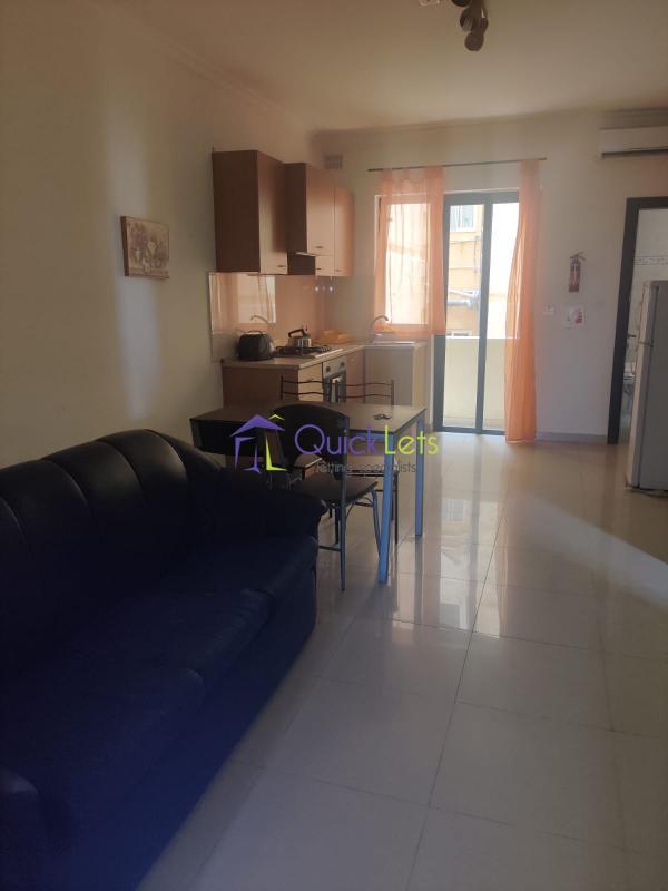 A one-bedroom apartment has one bathroom with a bath and an open-plan kitchen/living area. The kitchen has a fridge/freezer/cooker/hob. The property has a washing machine, a 32’’ Plasma TV, and Air conditioning in the bedroom. The apartment has a backyard. The block is situated in a residential area in Qawra. Bus stops, shops, and other amenities are also within walking distance.